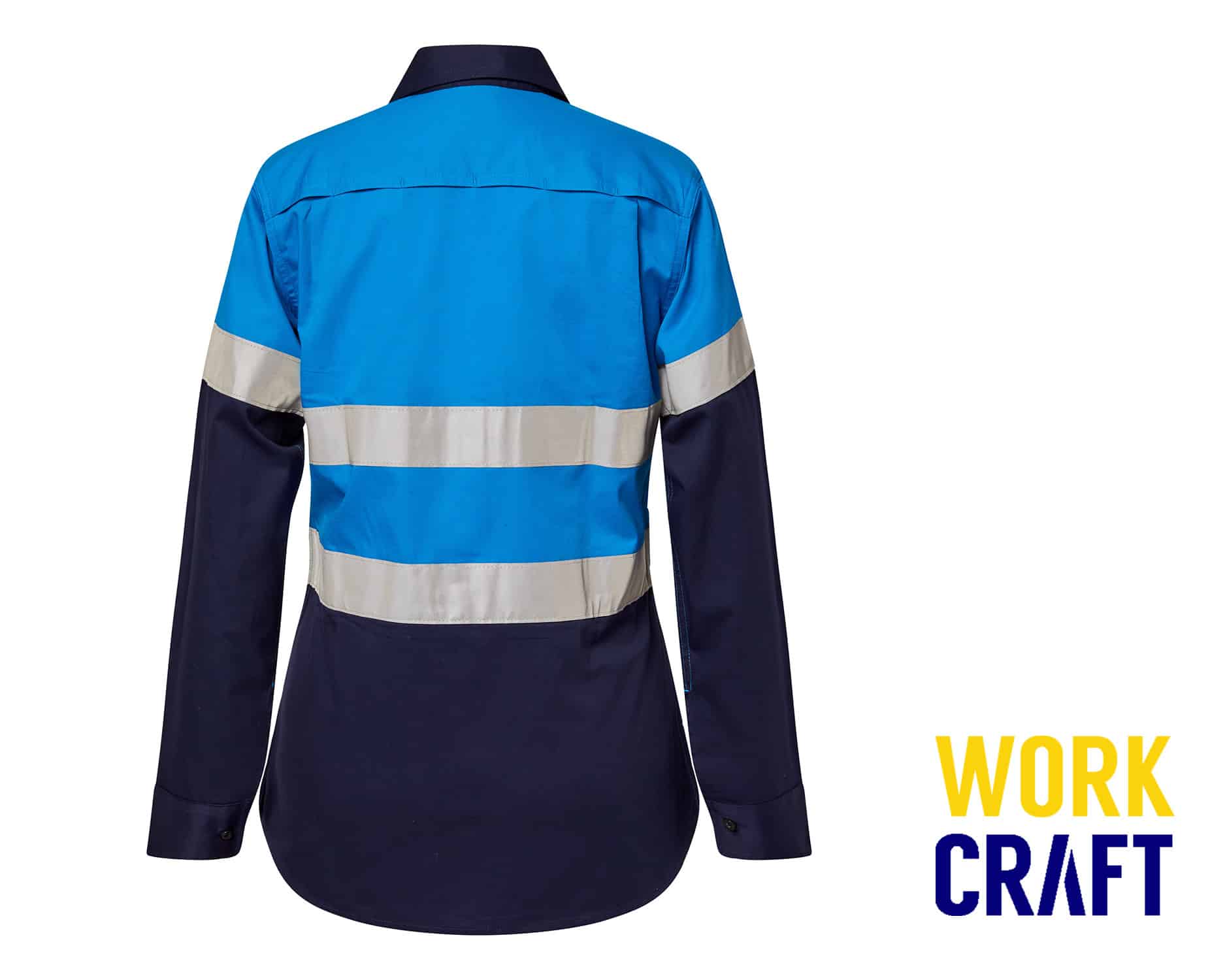 Hi-Vis Lightweight Reflective Vented Cotton Drill L/S Ladies Shirt Electric Blue/Navy