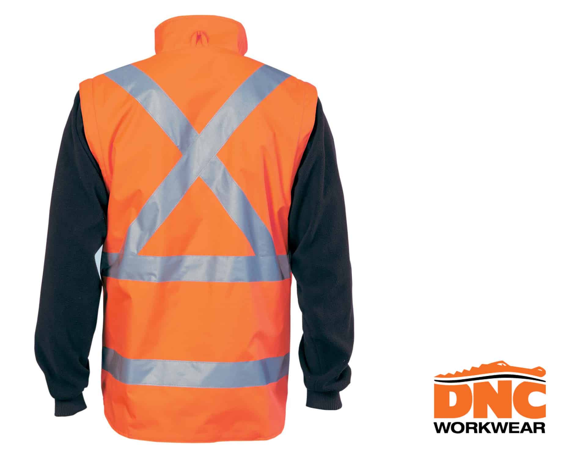 Polar fleece zip off sleeve converts to reversible vest. Hidden zip access to 3993 or 3995 converts into 6”in 1” jacket. Embroidery access. ‘X’ Back with additional tape on Tail, Generic R/Tape